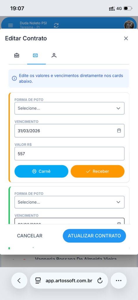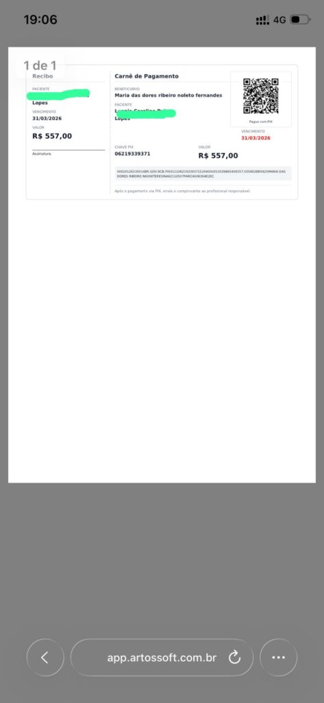 no contrato do paciente o serviço que não foi recebido terá a opção carnê